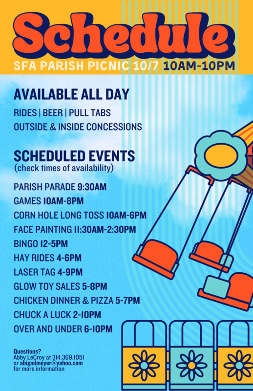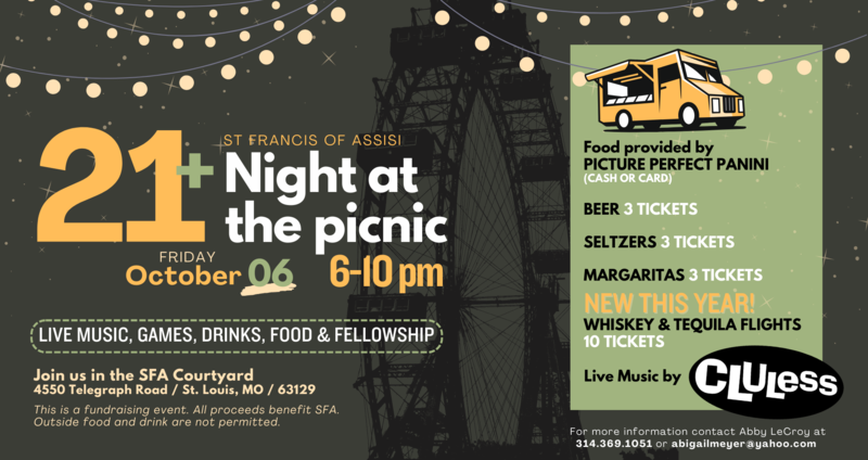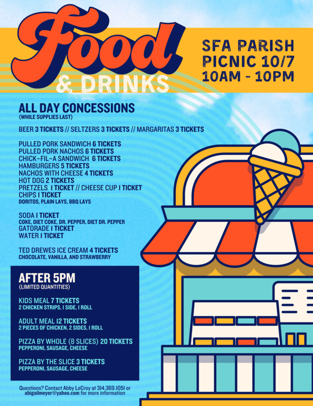 Join us for our annual parish picnic on Saturday, October 7th! 21+ night, schedule, ticket, and vendor information below.